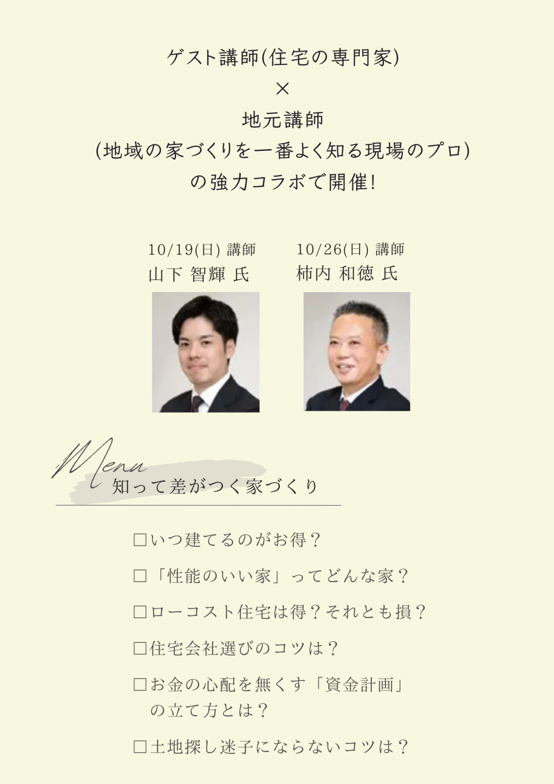 家づくりの「何から始めればいいの ??」という初歩的な疑問から、失敗しないための進め方や考え方・気をつけるべき点などを分かりやすくお伝えしている講座です(*Ü*)ノ